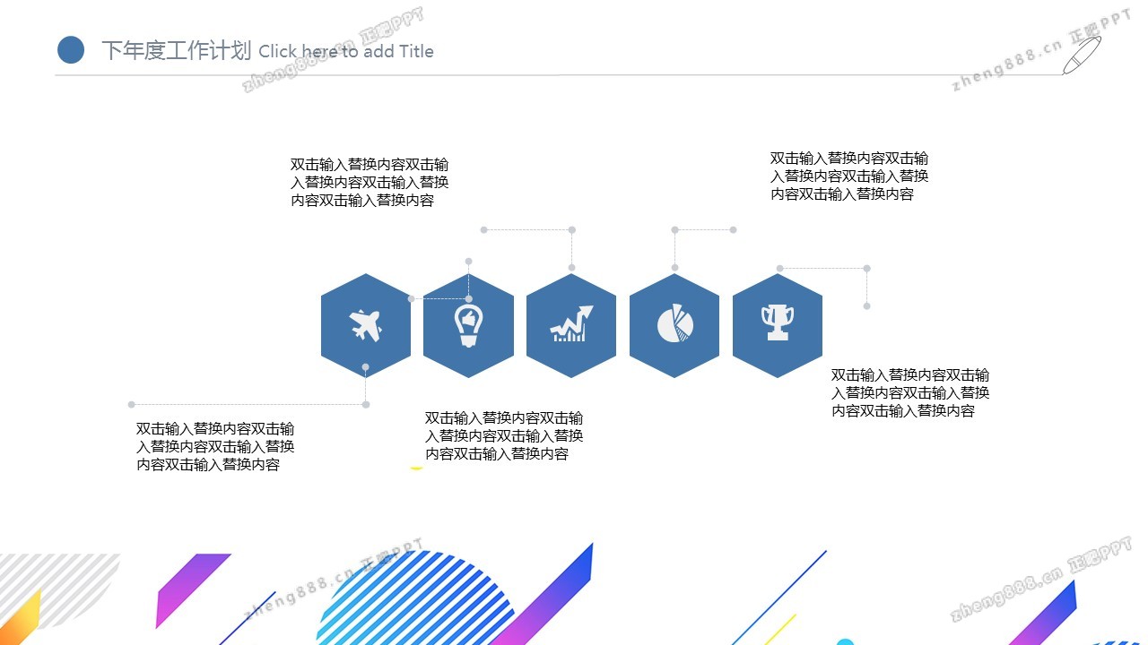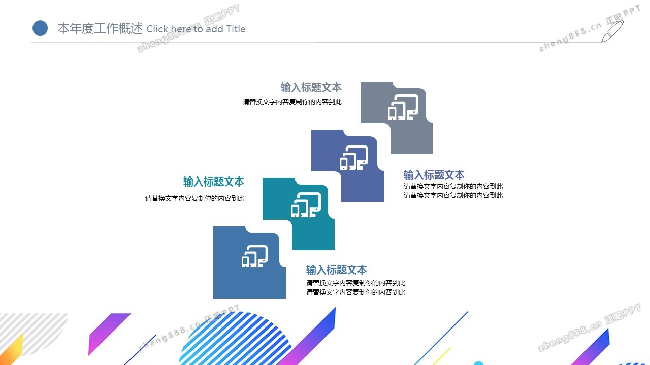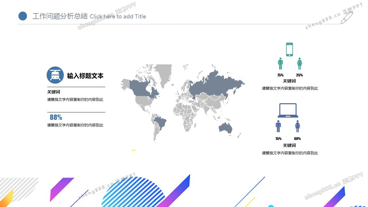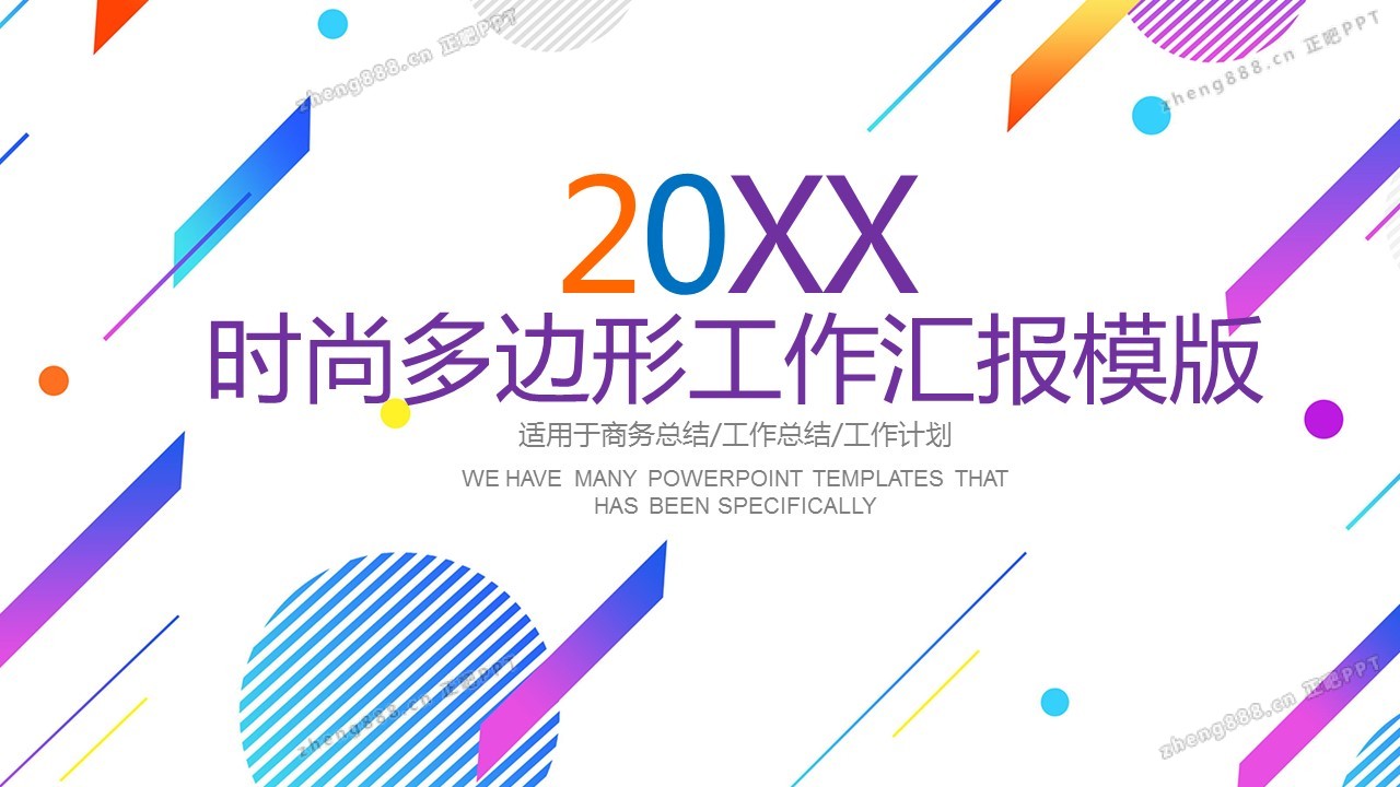 彩色时尚多边形工作总结PPT模板