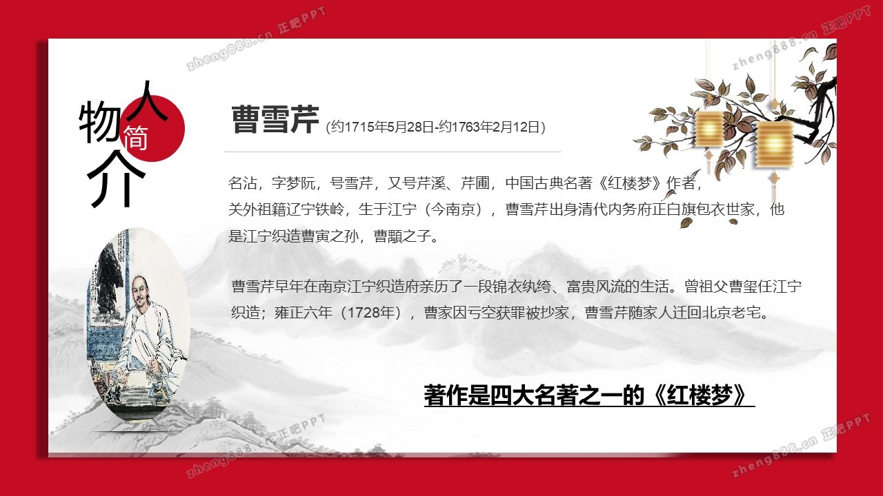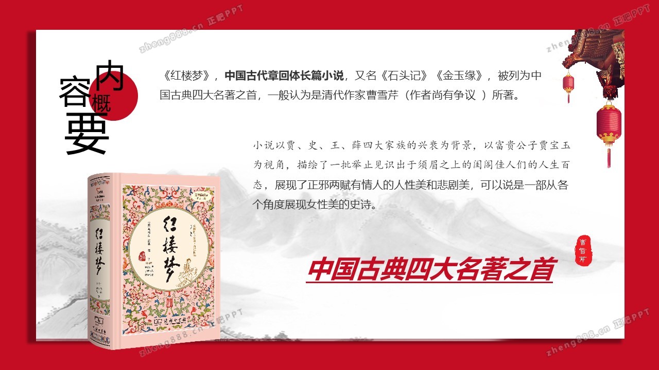 中国古典四大名著《红楼梦》读书笔记PPT模板