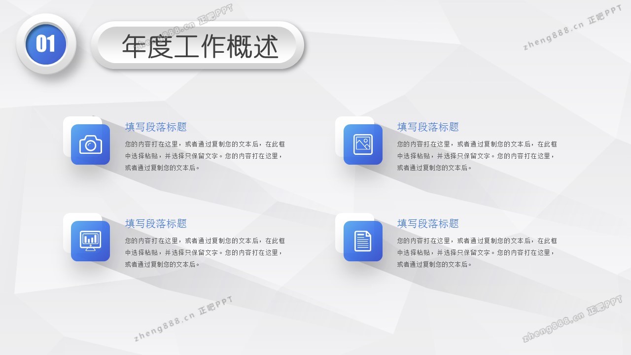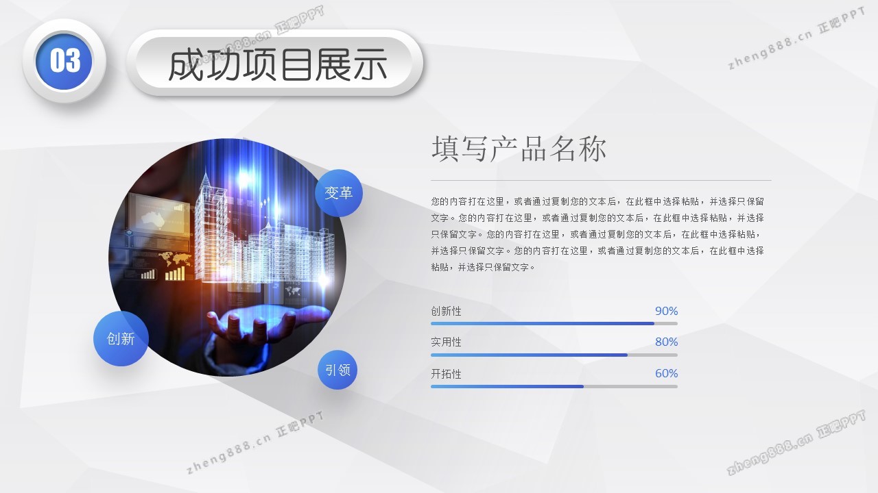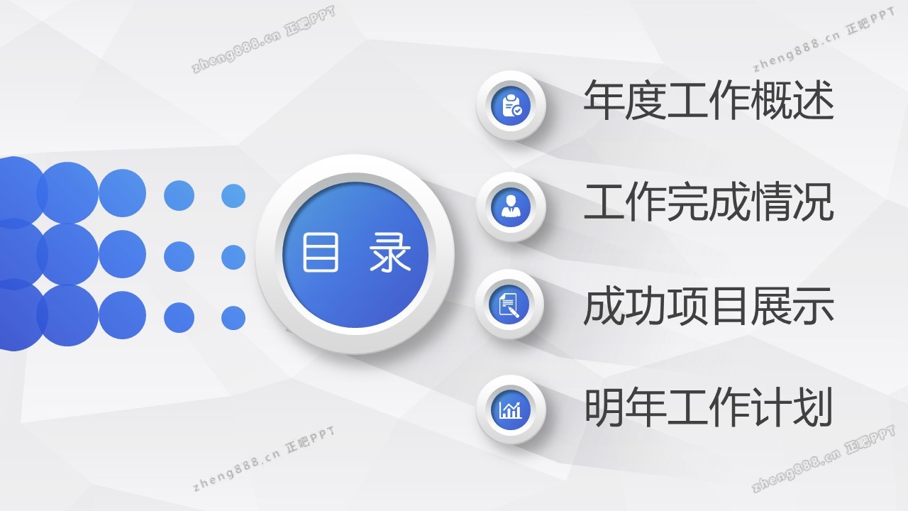欢迎您访问【正吧PPT】,我们致力于为设计师和泛办公人群提供分享PPT作品。内容涵盖了商业策划、报告总结、教育培训、公务党建等方面的演示模板