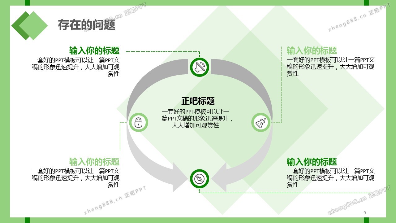 欢迎您访问【正吧PPT】,我们致力于为设计师和泛办公人群提供分享PPT作品。内容涵盖了商业策划、报告总结、教育培训、公务党建等方面的演示模板