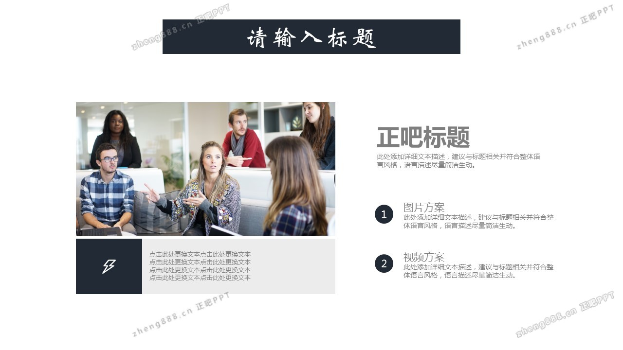 欢迎您访问【正吧PPT】,我们致力于为设计师和泛办公人群提供分享PPT作品。内容涵盖了商业策划、报告总结、教育培训、公务党建等方面的演示模板